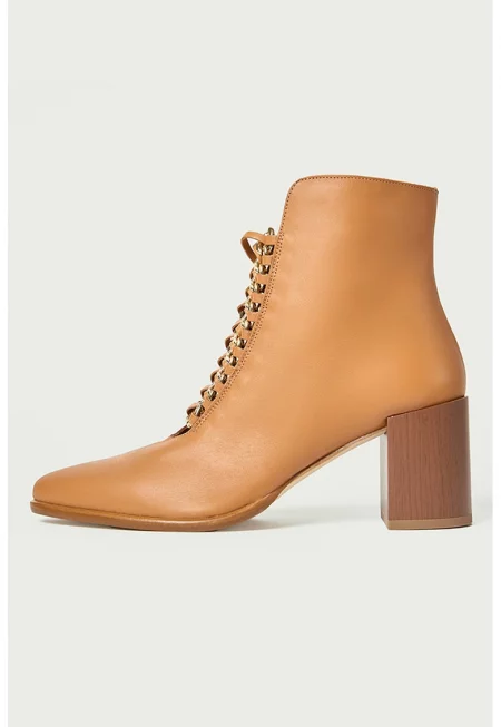 Кожени боти с връзки - Тъмножълт