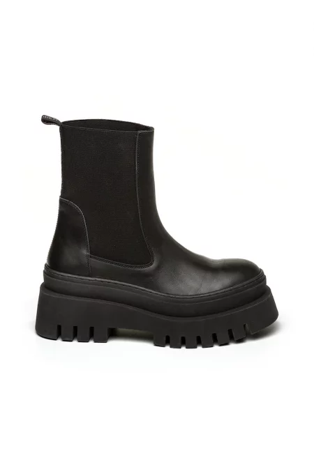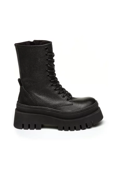 Кожени боти с масивен ток - Черен