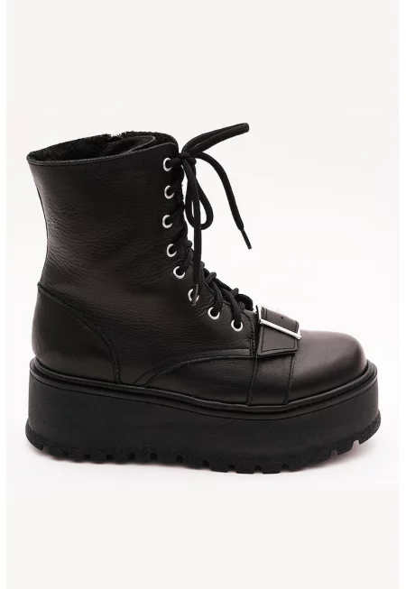 Дамски боти до глезена - 30322368738 - Еко кожа - Черен