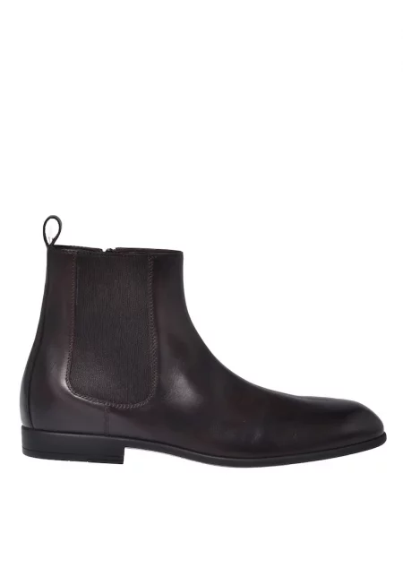 Кожени боти Chelsea с цип - Тъмнокафяв