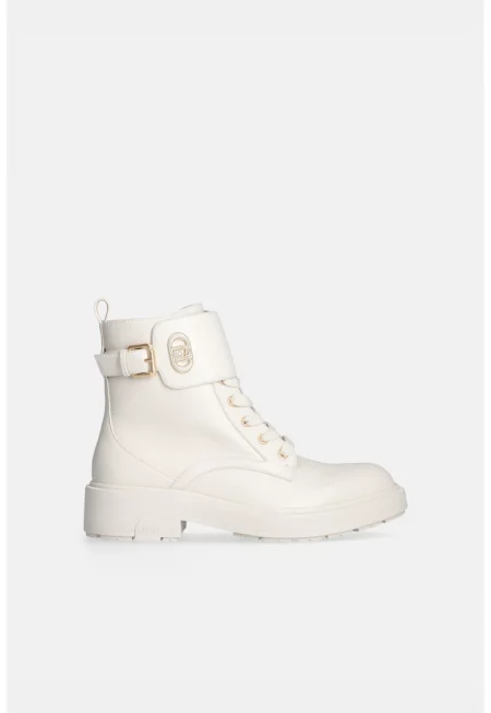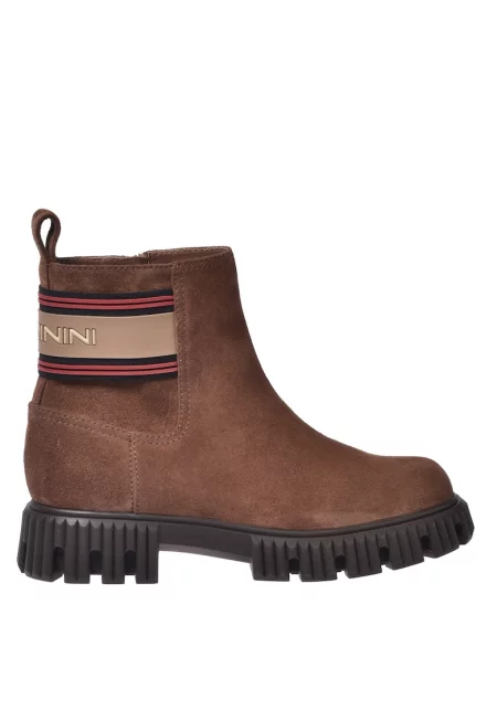 Кожени боти с бродирано лого - Сив/Светлокафяв