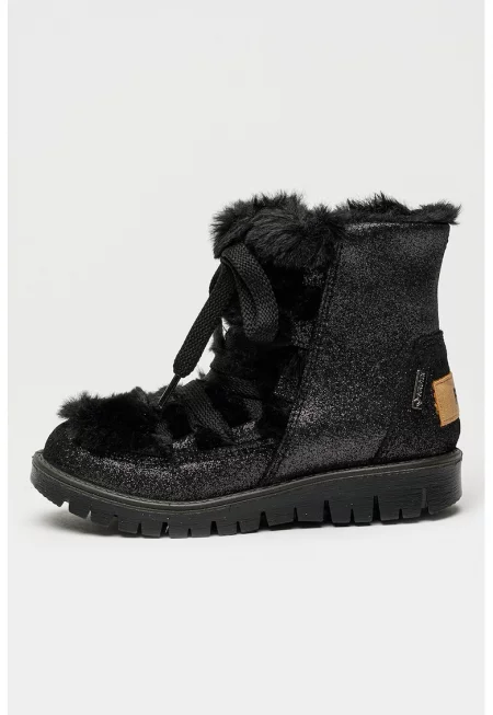 Детски ботуши Snowfur - черни - велур - вълна - Черен