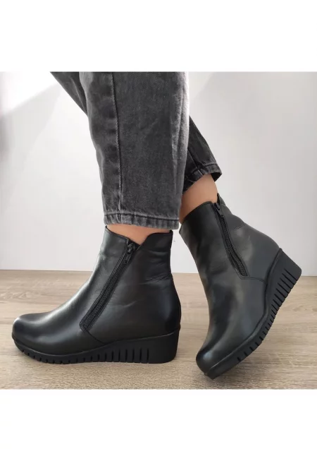Ежедневни боти - дамски - D6670-03 черни - екологична кожа - Черен