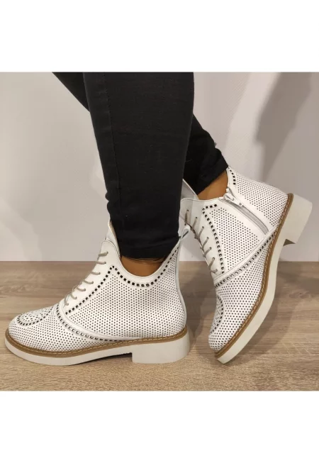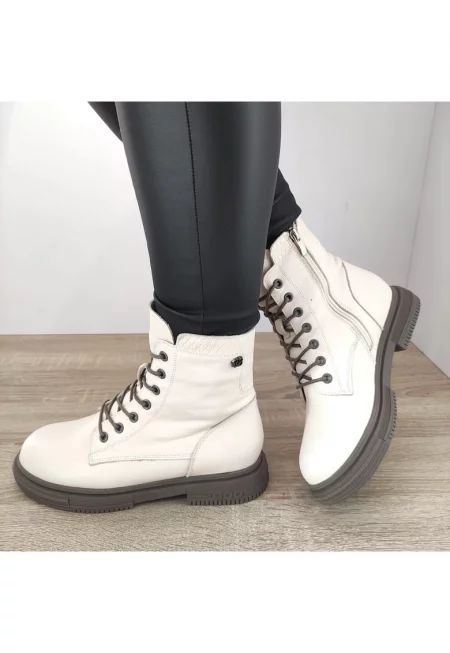 Дамски боти от естествена кожа W0374-80-13-22 бели - бял печат