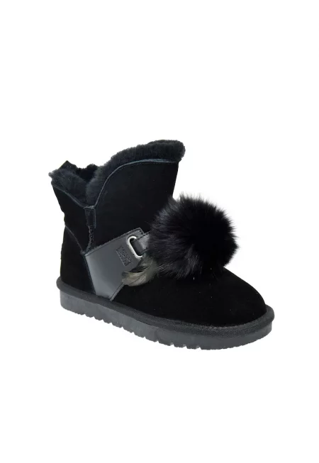Черни водоустойчиви боти с хастар от естествена кожа - Черен
