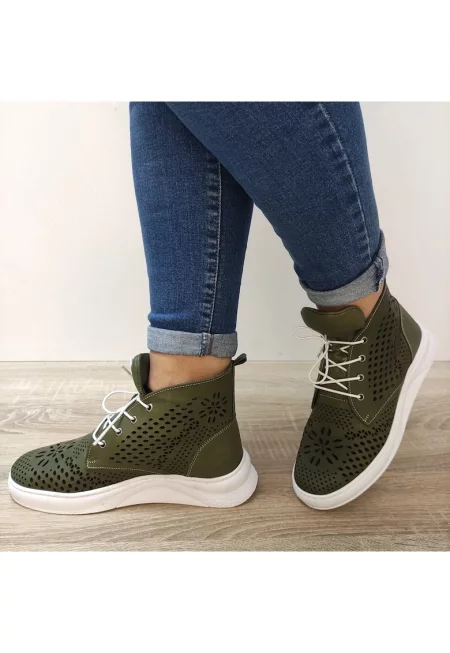 Дамски перфорирани ботуши 104 Green - Зелени - Зелен