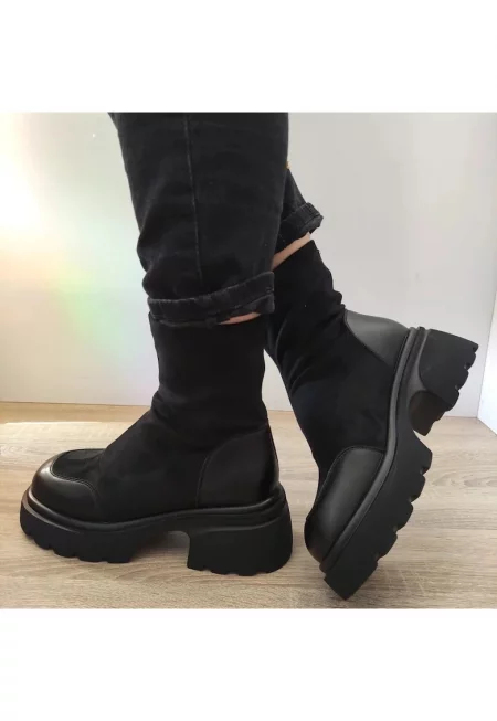 Елегантни дамски боти 30004B 01-I черен велур - Черен