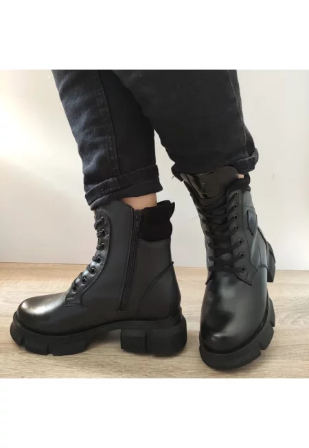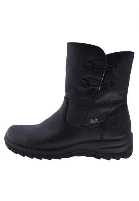 Дамски боти с платформа - черни - естествена кожа RIKW1873-00 - Черен