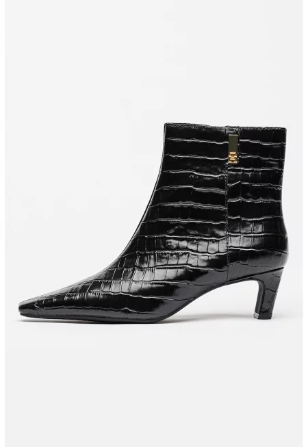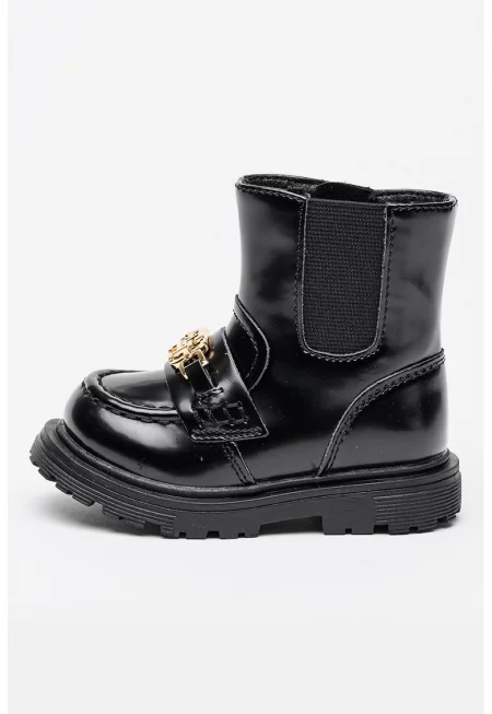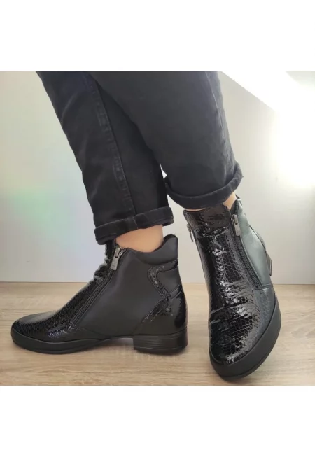 Дамски боти изработени от естествена лачена кожа - черни - Черен