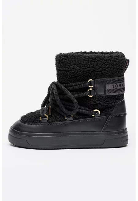 Боти с връзки и еко пух - Бежов/Мръснобял