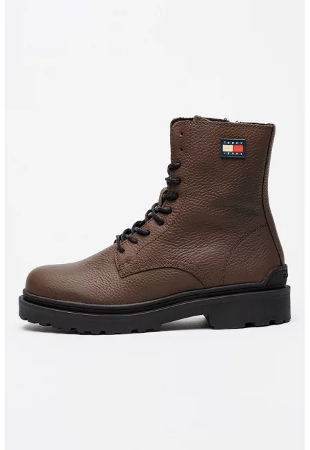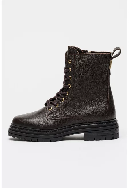 Кожени боти с каишка за лесно обуване - Тъмнокафяв