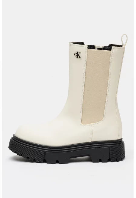 Боти от еко кожа с еластични детайли - Слонова кост