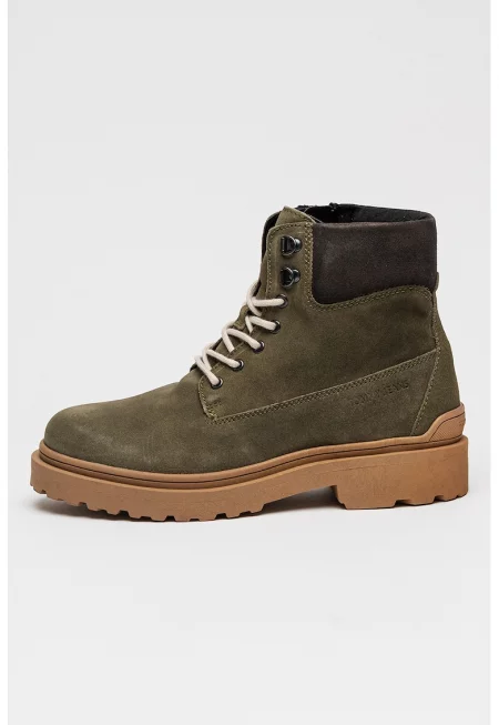 Боти от набук с лого - Черен