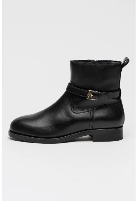 Кожени боти с декоративна каишка с тока - Черен