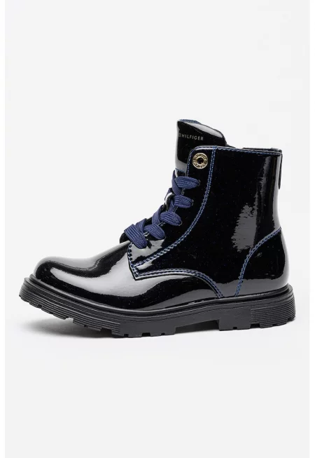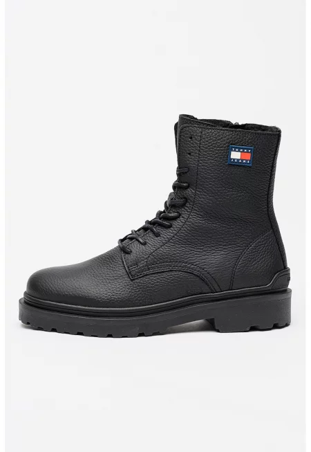 Кожени боти с лого - Черен