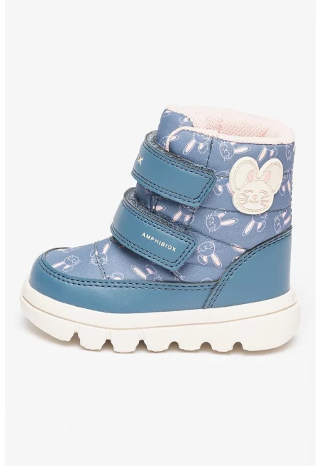 Непромокаеми боти с щампа със зайчета - Прашно синьо/Пастелнорозов
