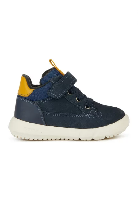 Боти с велкро и велур - Тъмносин/Тъмножълт