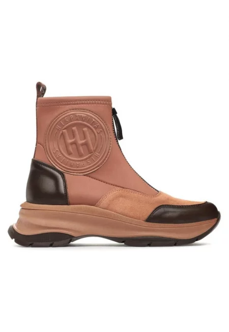 Боти с цип - Светло кафяво/Сребрист