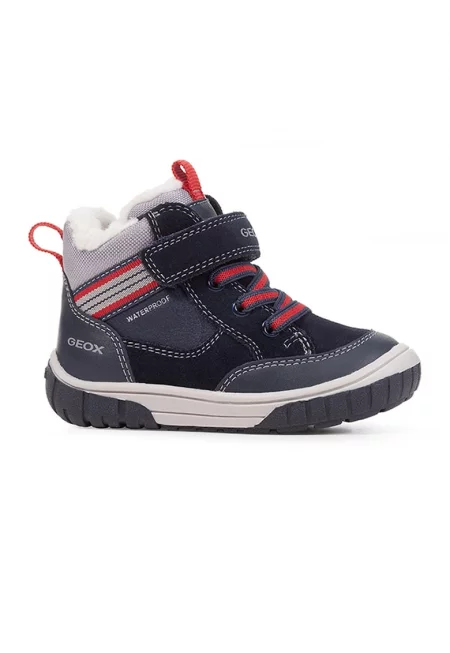 Непромокаеми боти с кожа и велур - Червен/Тъмносин