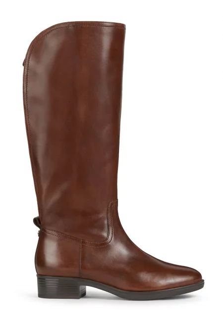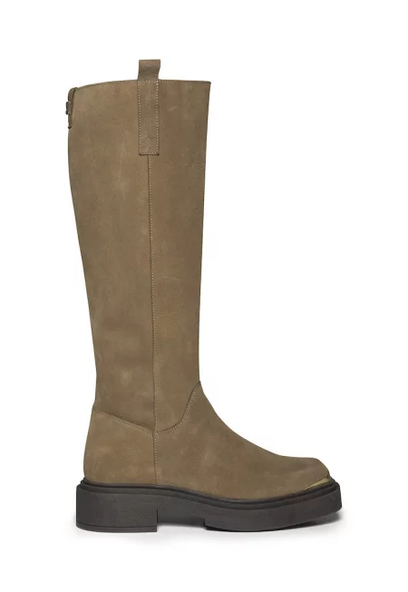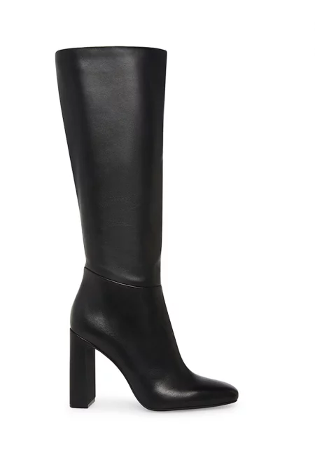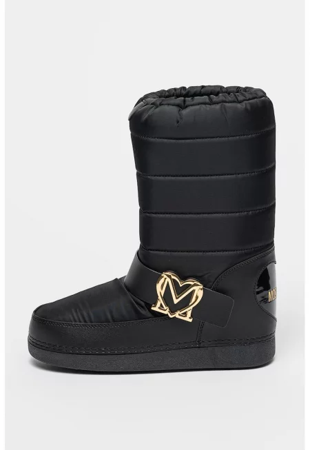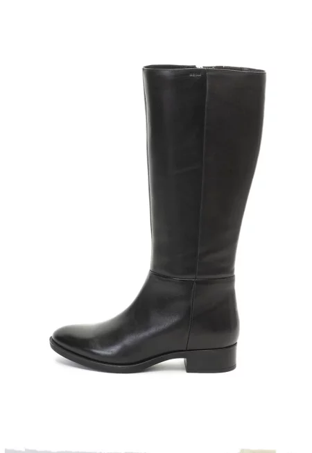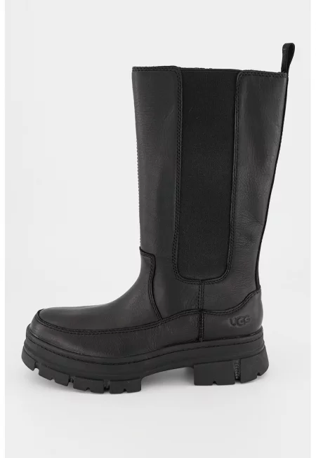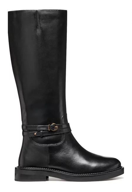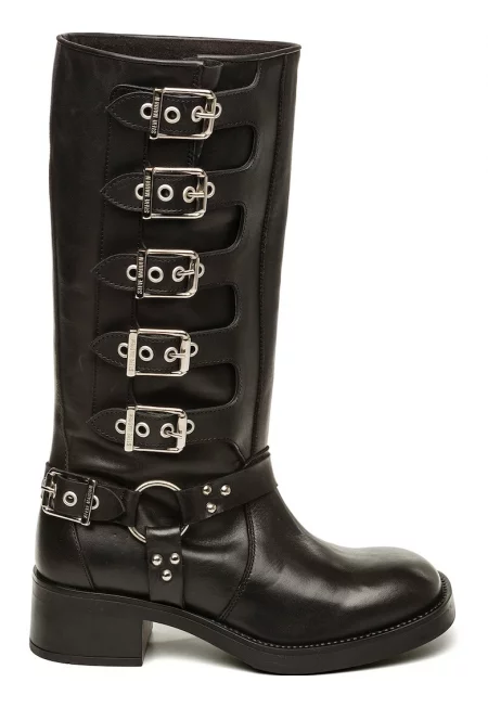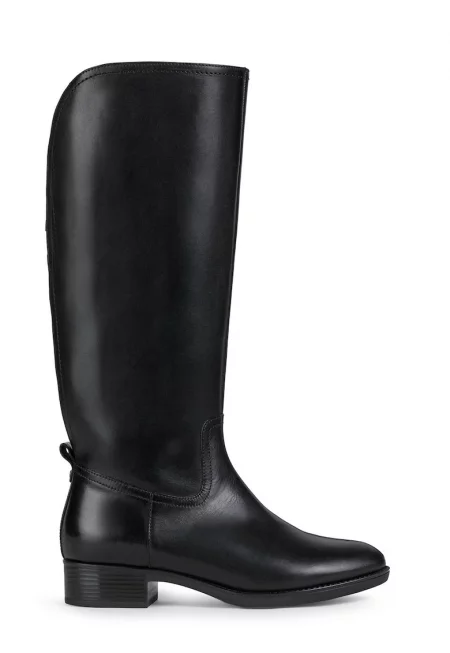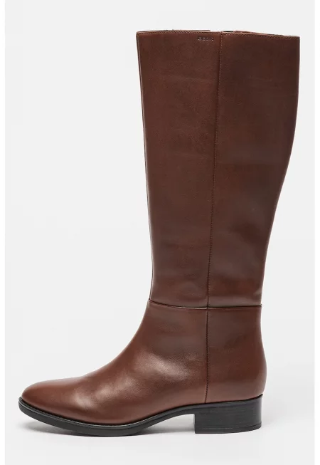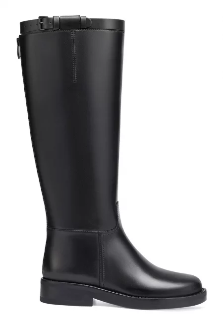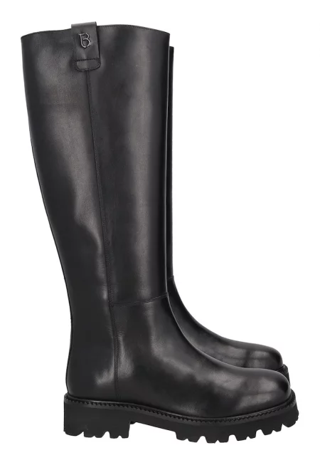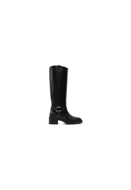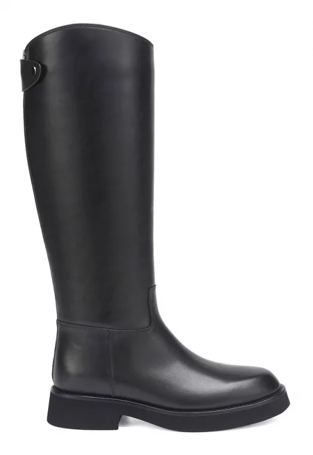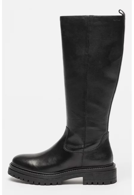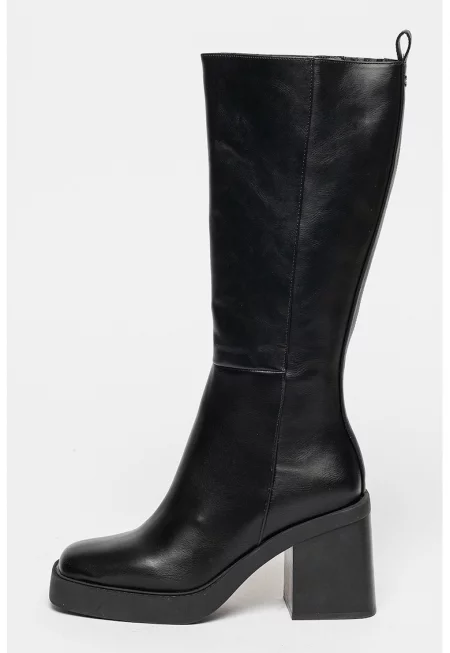 Кожени високи ботуши с квадратен връх и лого - Черен