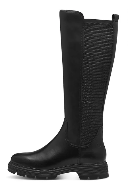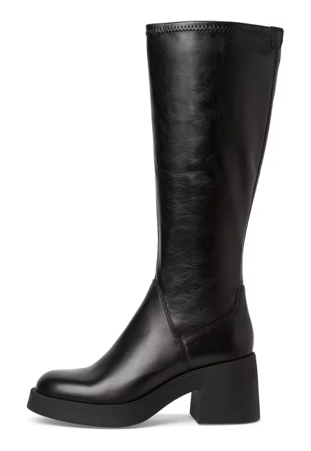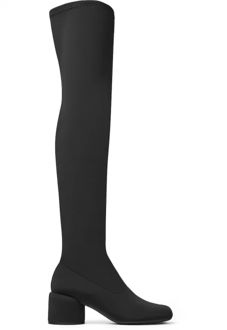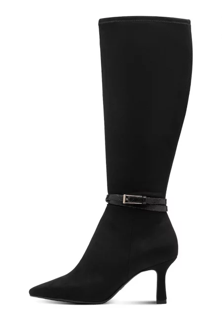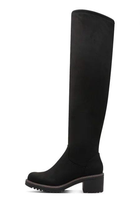 Кожени ботуши над коляното Neuman с текстил - Черен