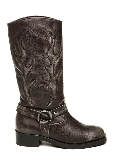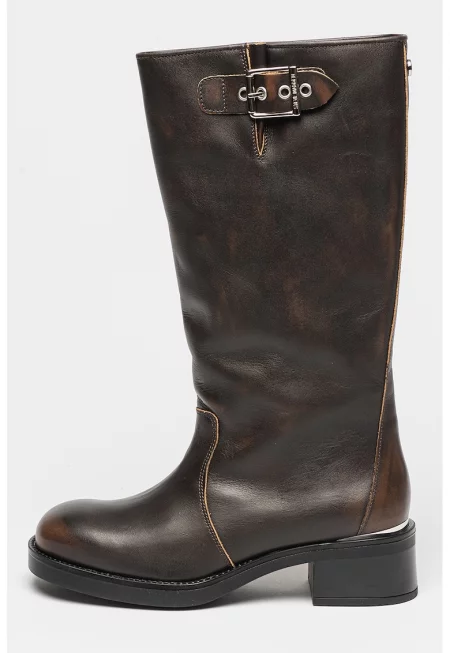 Кожени ботуши Milah 471 с масивен ток - Черен