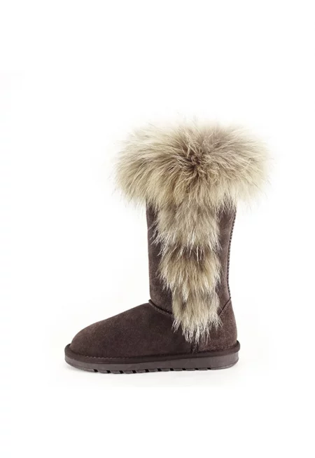Ботуши от естествена кожа тъмнокафяви с пух Eva 110 9620