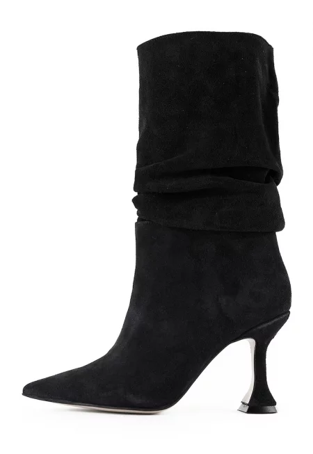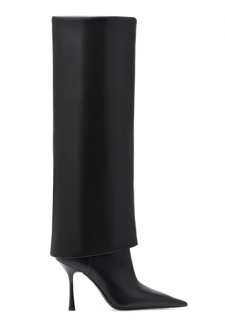 Високи ботуши от еко кожа Selena с остър връх - Черен