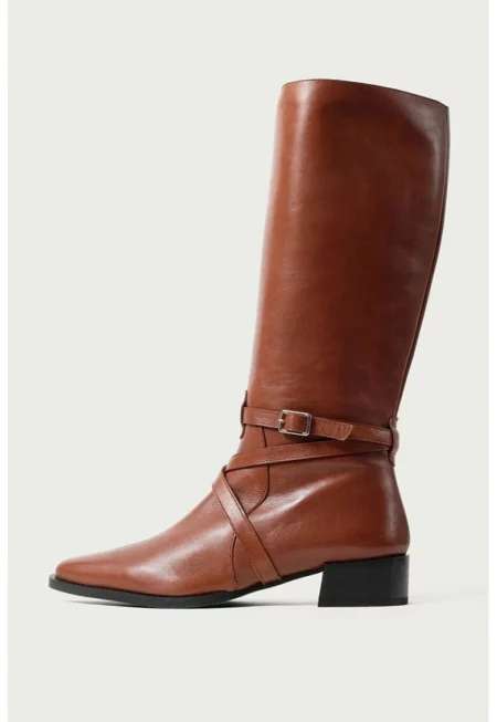 Кожени ботуши с каишки с тока - Канелено кафяво