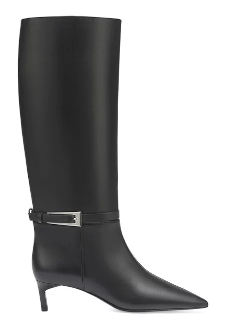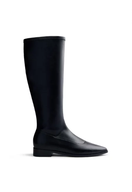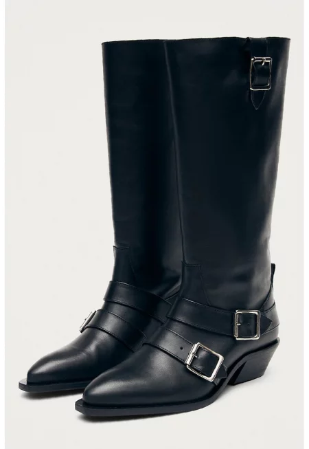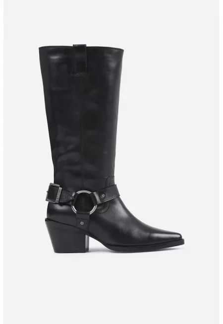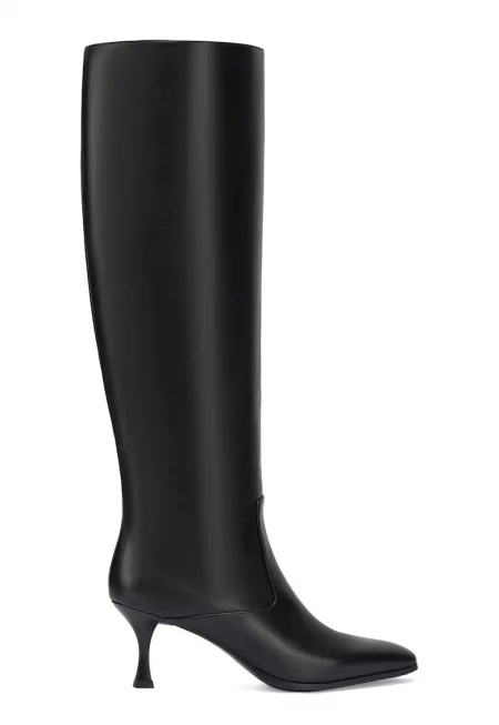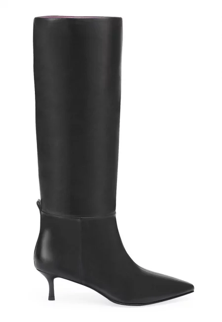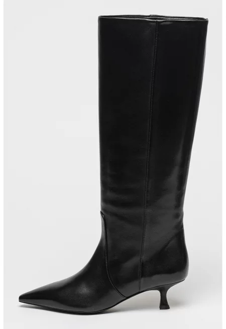 Високи ботуши от кожа с остър връх - Черен