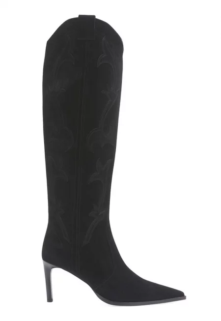 Велурени ботуши със заострен връх - Черен