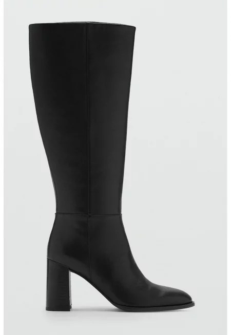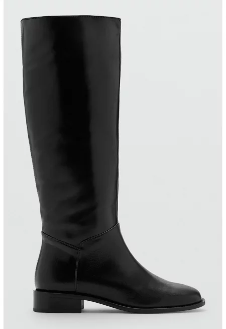 Високи кожени ботуши с квадратен връх - Черен