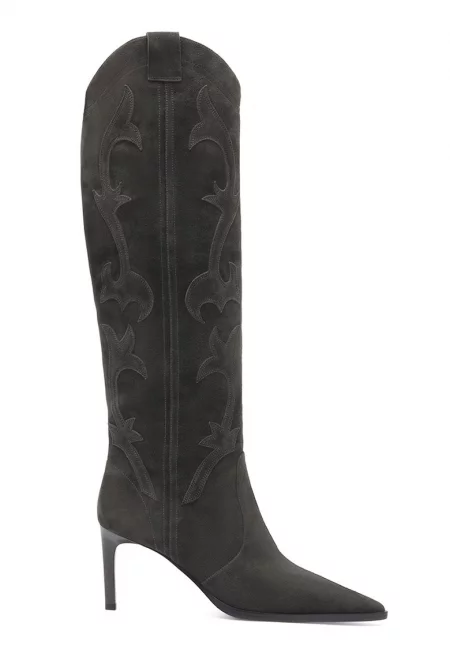 Велурени ботуши със заострен връх - Сиво-кафяв