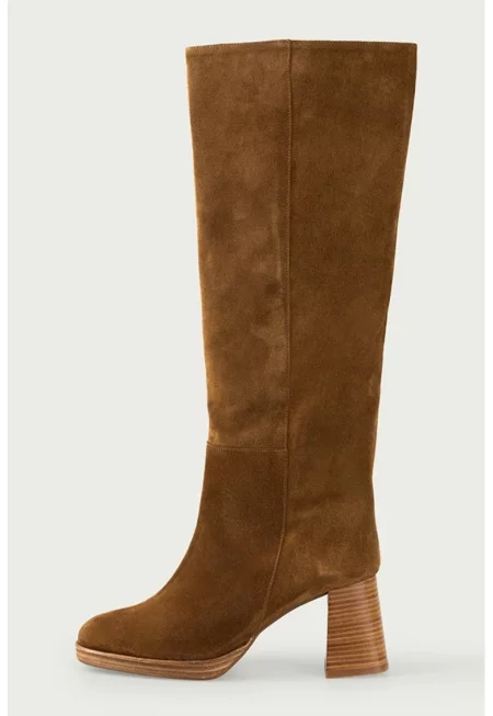 Велурени ботуши до коляното - Камел