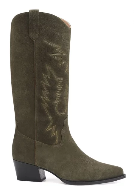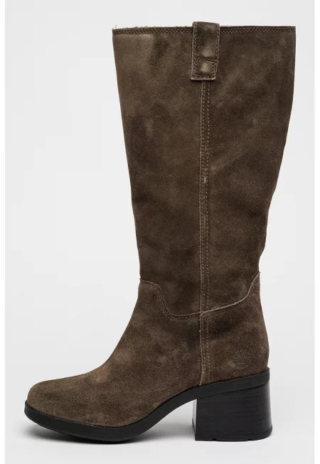 Кожени дълги ботуши Bellevaux с масивен ток - Тъмно каки