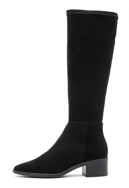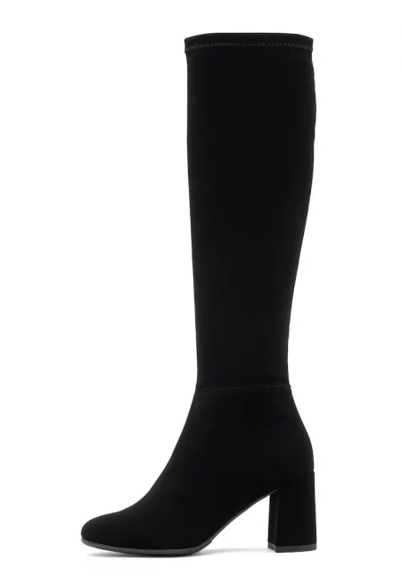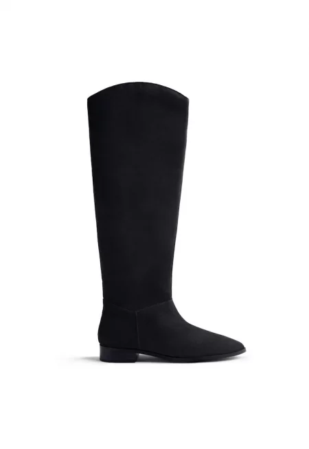 Ботуши до коляното от еко велур - Черен
