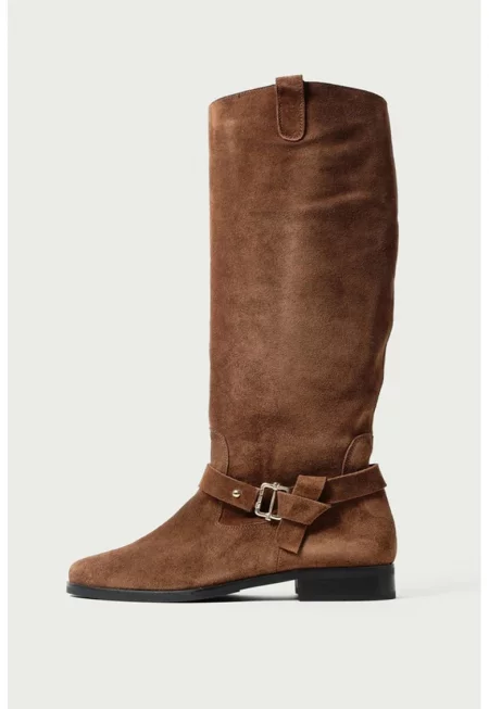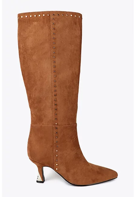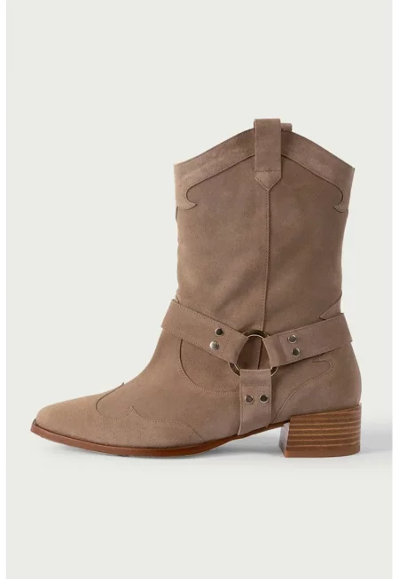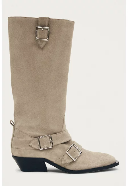 Велурени ботуши Ryder с кубински ток - Светло кафяво