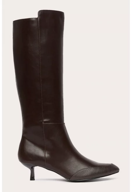 Боти до коляното от еко кожа с котешки ток - Тъмнокафяв
