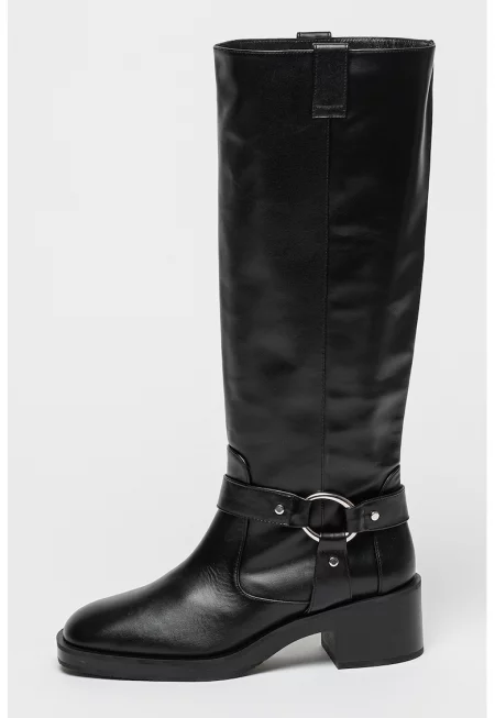Кожени ботуши до коляното - Черен