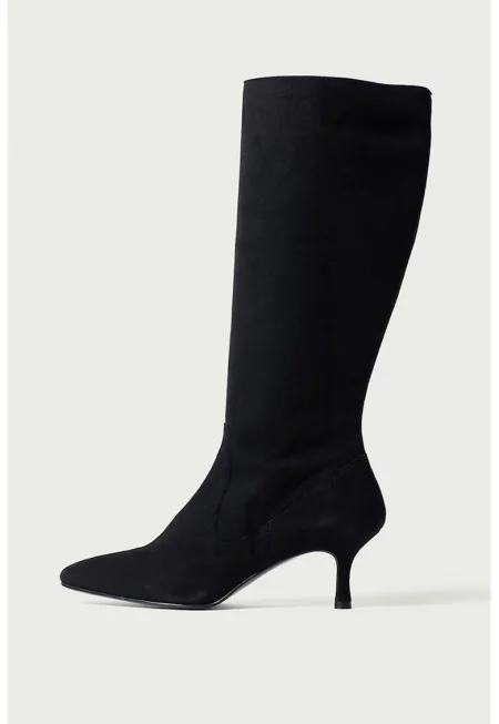 Велурени ботуши до коляното с остър връх - Черен