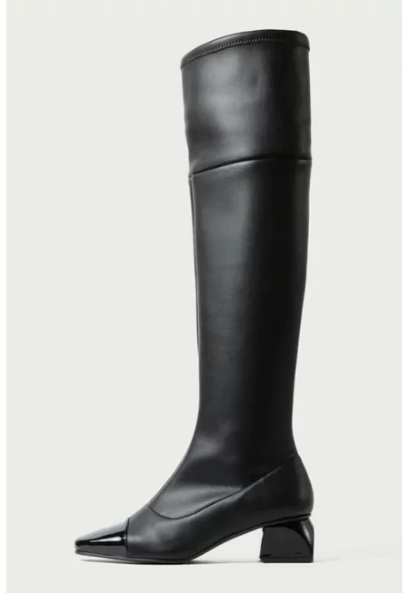 Ботуши до коляното от еко кожа - Черен