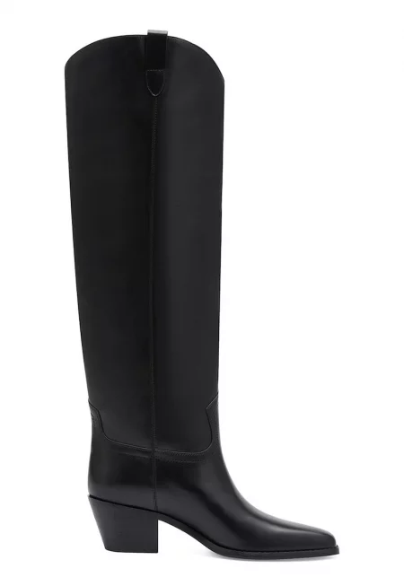 Кожени ботуши до коляното с остър връх - Черен