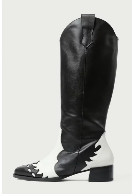 Кожени ботуши Kalia с масивен ток - Бял/Черен