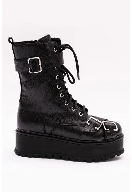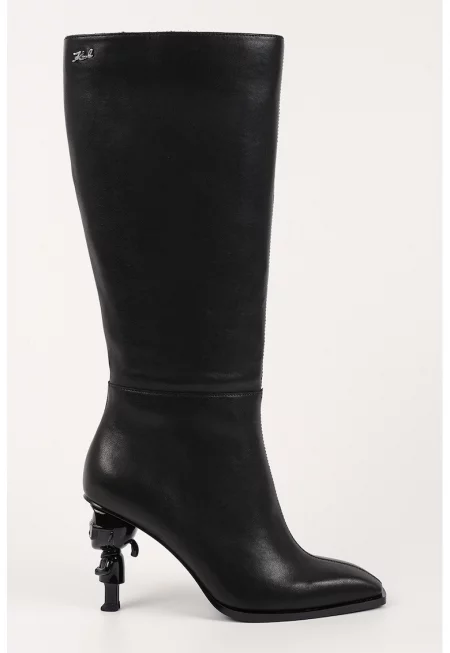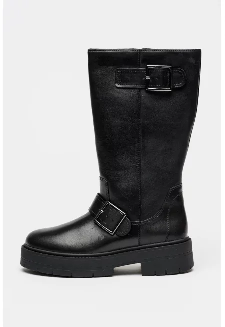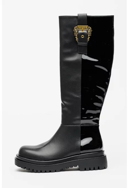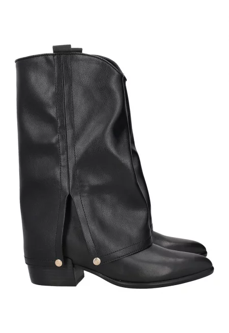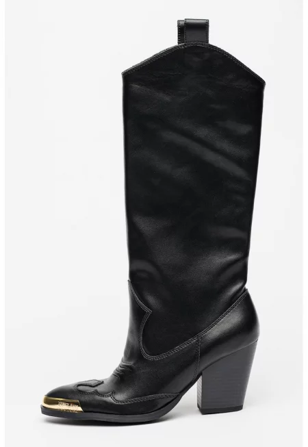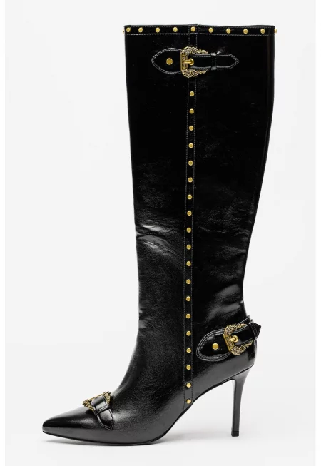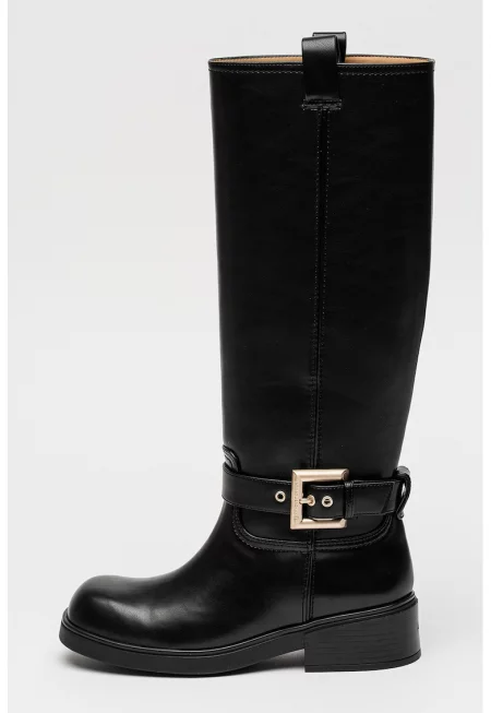 Високи ботуши Kris от еко кожа с декоративна тока - Черен