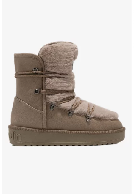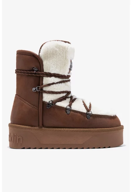 Боти с вата от еко пух и равна палтформа - Бял/Тъмнокафяв