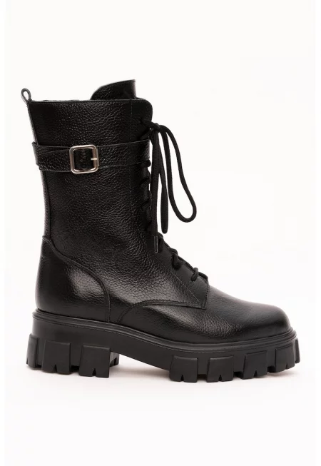 Дамски високи ботуши CW978 - Естествена кожа - Черен