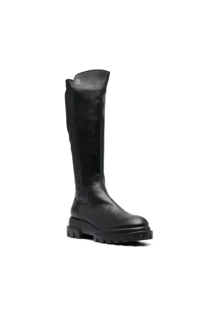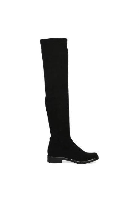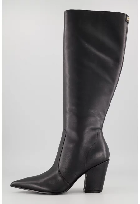 Кожени ботуши до коляното Nariel с остър връх - Черен