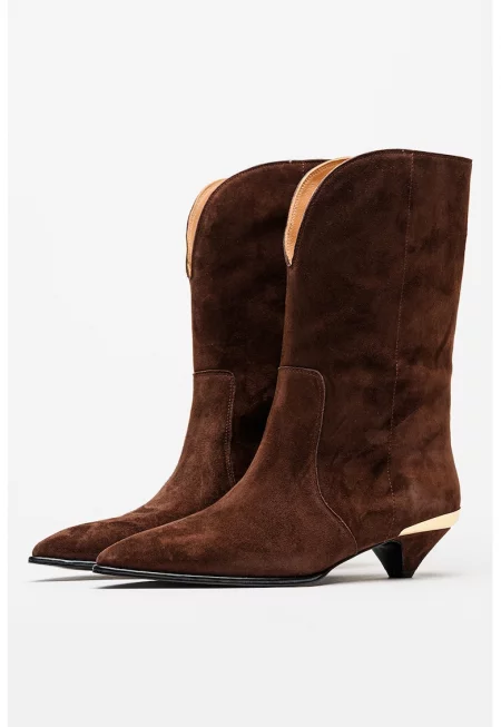 Кожени ботуши до прасеца с токи - Тъмнокафяв