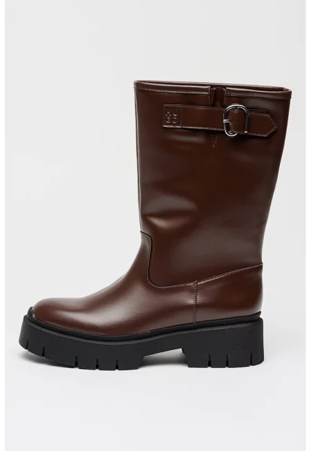 Високи ботуши Kris от еко кожа с декоративна тока - Тъмнокафяв