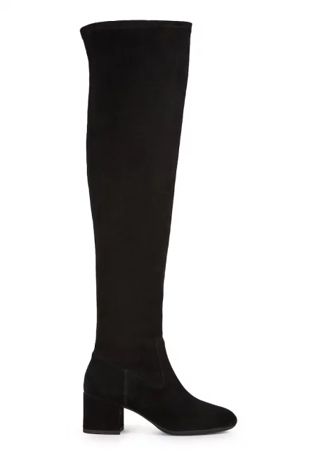 Велурени ботуши до коляното с масивен ток - Черен